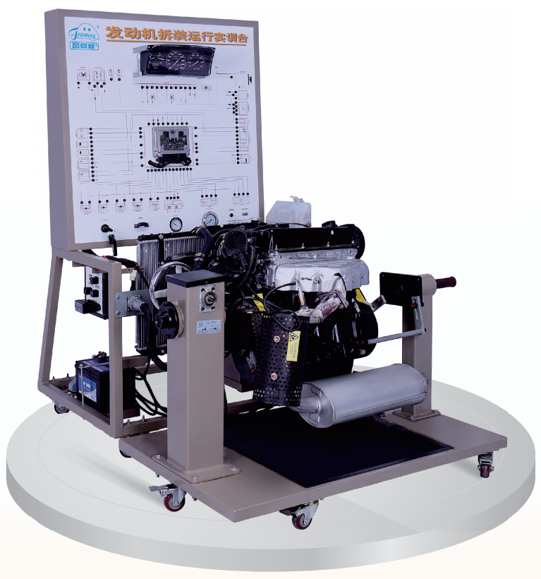 該設備采用裝有柴油發動機總成 (易于拆裝)的拆裝翻轉臺架和運行檢測控制臺兩部分組成。拆裝翻轉臺架提供學員進行發動機拆卸和裝配實訓。裝配好發動機后與運行檢測控制臺對接,可啟動運行發動機,檢測發動機的裝配效果。試用于中高等職業技術院校、普通教育類學院和培訓機構對發動機和維修實訓的教學需要。