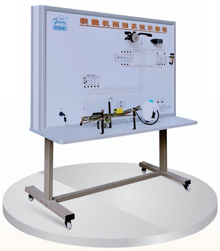 檢測控制面板、點火開關、前雨刮開關、后雨刮開關、前噴水開關、后噴水開關、前雨刮總成、后雨刮總成、前噴水電機、后噴水電機、前噴水壺、后噴水壺、前雨刮繼電器、后雨刮繼電器、智能故障設置和考核系統,移動臺架(帶自鎖腳輪裝置)。