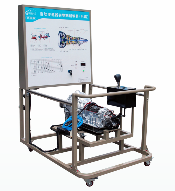 該設備采用豐田A341E電控自動變速器總成為基礎,用三相齒輪減速感應電機做動力源,使用高壓氣體推動用油元件動作來實現變速器的換擋過程,可對解剖后的自動變速器進行檔位顯示、空檔起動、前進檔及倒檔運行等工況實踐操作,可全面展示電控自動變速器內部組成結構及各檔位用油元件的工作過程。適用于中高等職業技術院校、普通教育類學院和培訓機構對自動變速器理論和維修實訓的教學需要。