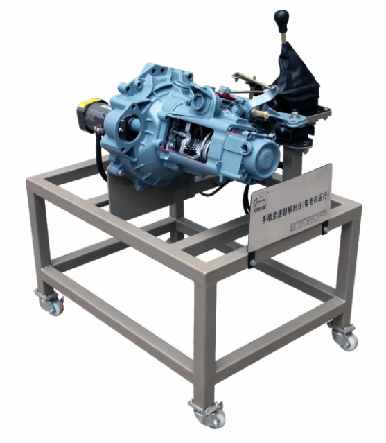 一、功能特點(diǎn)(注∶ 以大眾捷達(dá)前驅(qū)為例)1.采用大眾捷達(dá)前驅(qū)手動(dòng)變速器進(jìn)行剖面處理,各部件齊全,剖面位置合理,可全面展示內(nèi)部結(jié)構(gòu)和部件的運(yùn)動(dòng)情況,適合于手動(dòng)變速器原理和機(jī)械機(jī)構(gòu)的教學(xué)。2.對變速器各機(jī)械剖面采用不同顏色的油漆進(jìn)行噴涂。3.由三相齒輪減速感應(yīng)電機(jī)帶動(dòng)變速器輸入軸運(yùn)轉(zhuǎn),真實(shí)演示不同檔位下機(jī)械運(yùn)動(dòng)的傳遞過程。4. 移動(dòng)臺架采用了高強(qiáng)度的鋼結(jié)構(gòu)焊接,表面經(jīng)噴涂工藝處理。移動(dòng)臺架底部帶有自鎖