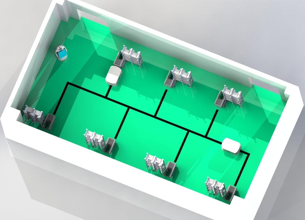 本項目共配套了1套IOA數字雙胞胎系統,7套小型智能倉庫與3臺AGV,要求學員使用IOA軟件搭架巡線搬運模擬場景,通過以西門子PLC作為總控,控制傳輸路線及AGV機器人,實現在智能工廠零部件加工生產線上AGV機器人巡線集成搬運到接駁站的典型場景實訓。