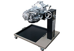 1. 采用大眾01N自動變速器總成(易于拆裝),并裝在專用翻轉架上。2. 采用減速翻轉機構,可使變速器旋轉任意角度,并能任意位置鎖止,便于學生從不同的角度進行拆卸和裝配。3. 底部放置接油盤,便于小零件或螺絲的集中存放。4. 翻轉架采用了高強度的鋼結構焊接,表面經噴涂工藝處理。翻轉架底部帶有自鎖腳輪,可移動式,方便教學。