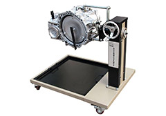 1. 采用大眾01M自動(dòng)變速器總成(易于拆裝),并裝在專(zhuān)用翻轉(zhuǎn)架上。2. 采用減速翻轉(zhuǎn)機(jī)構(gòu),可使變速器旋轉(zhuǎn)任意角度,并能任意位置鎖止,便于學(xué)生從不同的角度進(jìn)行拆卸和裝配。3. 底部放置接油盤(pán),便于小零件或螺絲的集中存放。4. 翻轉(zhuǎn)架采用了高強(qiáng)度的鋼結(jié)構(gòu)焊接,表面經(jīng)噴涂工藝處理。翻轉(zhuǎn)架底部帶有自鎖腳輪,可移動(dòng)式,方便教學(xué)。
